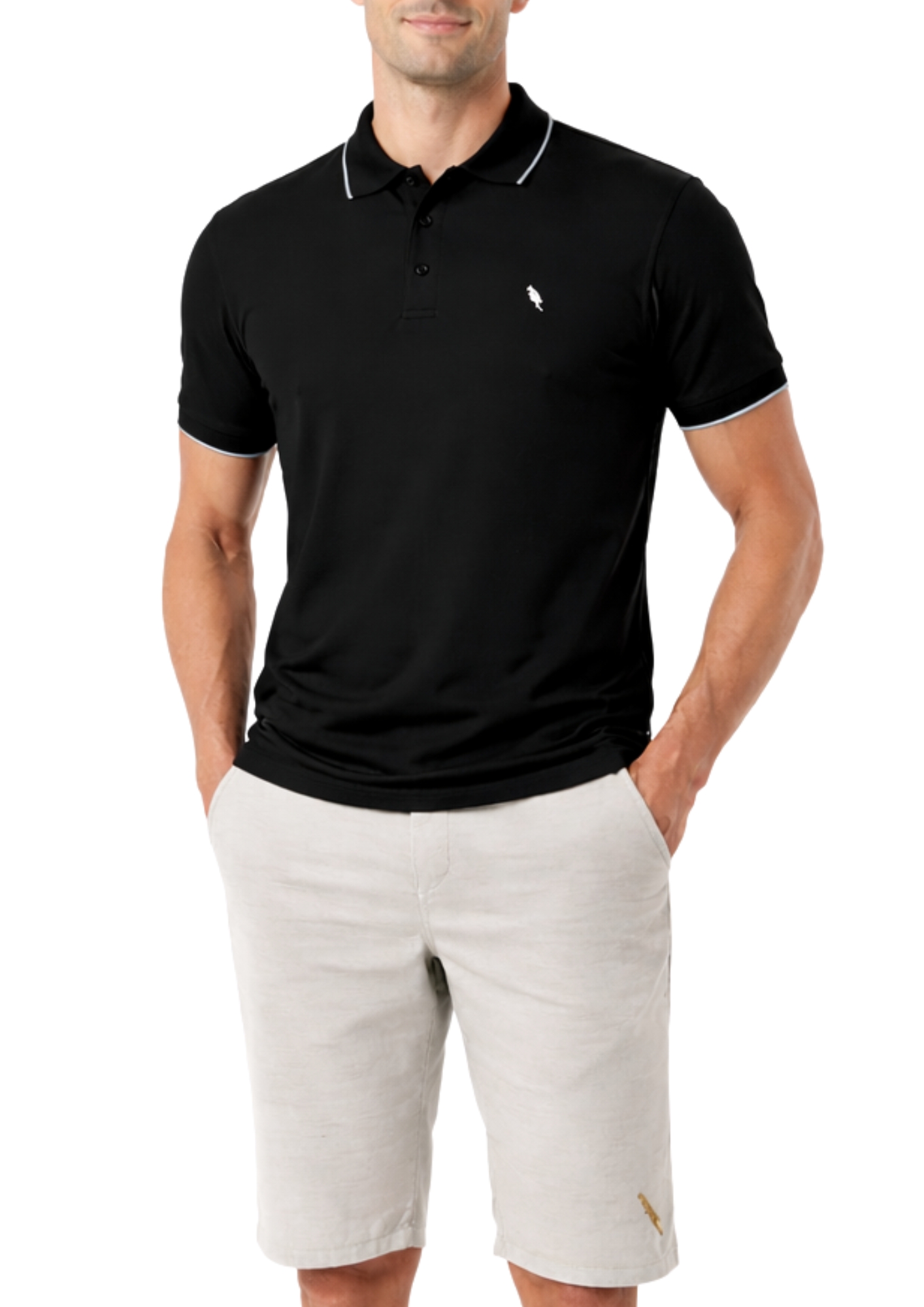 Polo 100% algodão 30.1 penteado, não cria bolinha, cor preta, toque macio, abertura lateral, coleção elegance arara