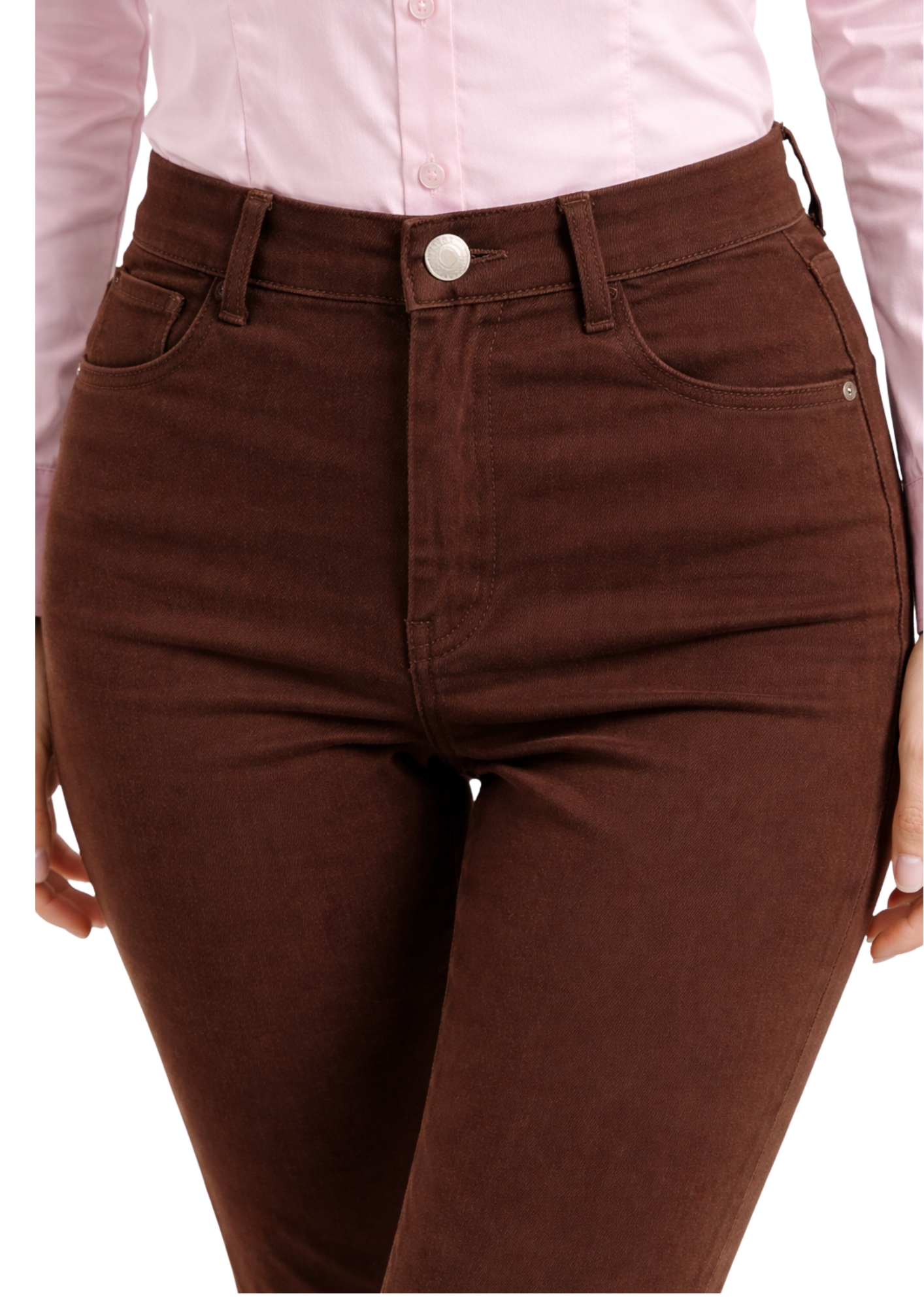 Calça de sarja na cor marrom, 98% algodão, 2% elastano, modelagem slim. Não sai de moda, pode ser usada em qualquer ocasião.
